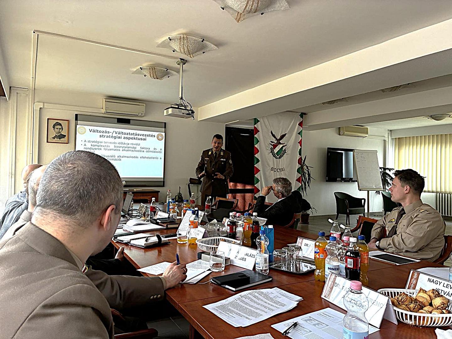 Holecz József alezredes előadása a 21. századi komplex környezet változásvezetési kihívásait vizsgálta, hangsúlyozva a stratégiai gondolkodás és a szervezeti alkalmazkodóképesség szerepét.